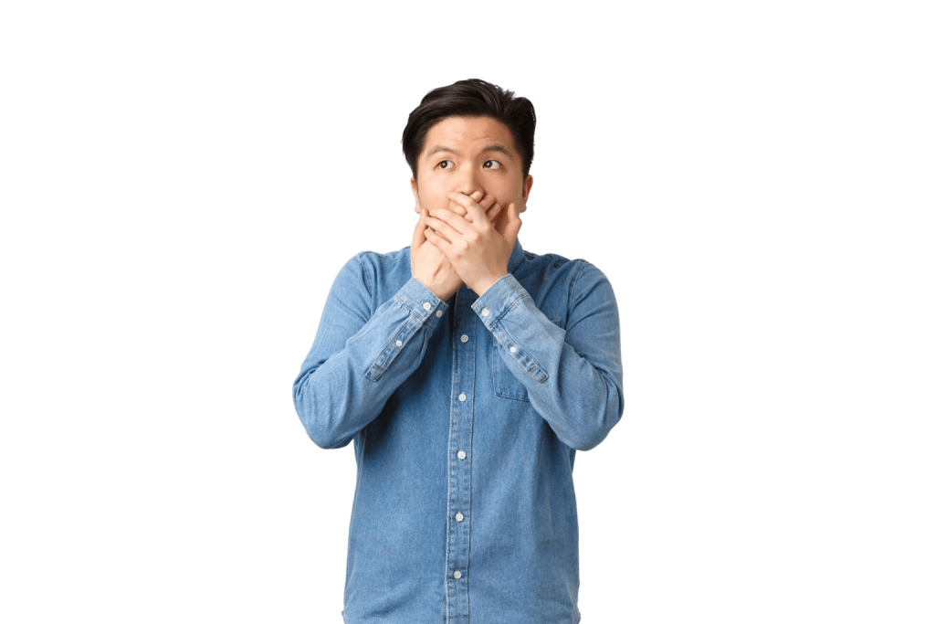 Terpaksa menggunakan tangan apabila senyum atau ketawa kerana kehilangan gigi.